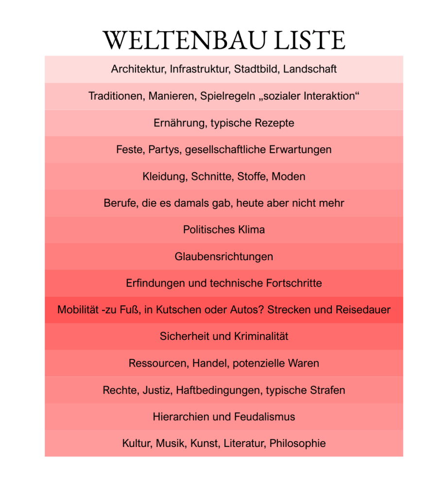 Je nachdem, wo und wann Deine Geschichte spielt, hast Du ein umfangreiches Fundament an Hintergründen anzureichern.